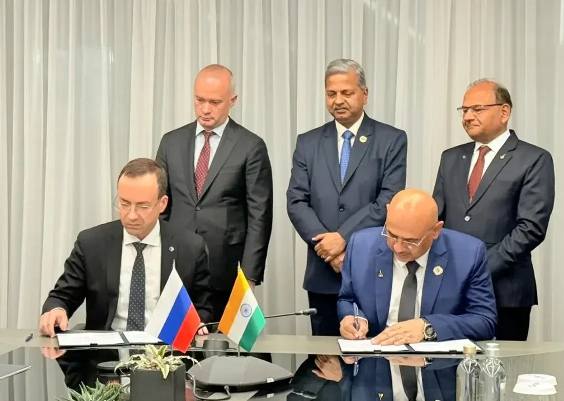 HAL поделилась подробностями подписания соглашения: «HAL и ПАО «Объединённая авиастроительная корпорация» России подписали меморандум о взаимопонимании по производству гражданских ближнемагистральных самолётов SJ-100 в Москве, Россия, 27 октября 2025 года».