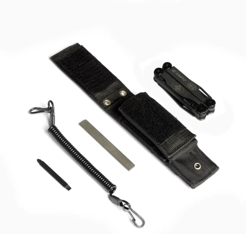 Новый мультитул состоит из двух клинков с прямой и пилообразной заточкой. С их помощью можно резать детонирующие шнуры, ткани и капроновые ленты. Также в нем есть консервный нож. Для бит предусмотрен держатель. Изделие также содержит устройство для создания гнезд под детонаторы. Отвертка с плоским шлицем позволяет выкручивать заглушки мин, а благодаря специальной заточке на обухе пользователю будет удобно зачищать провода. Помимо этого, в комплект ножа входят шило и пила по дереву, а также пассатижи с бокорезами.