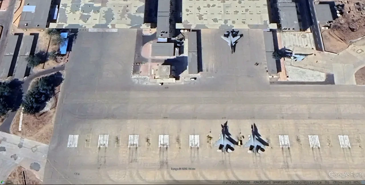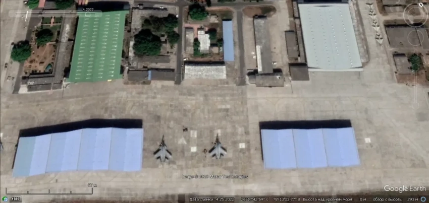 Спутниковый снимок Google Earth: истребители МиГ-21 на авиабазе Нал. Снимок сделан в декабре 2022 года