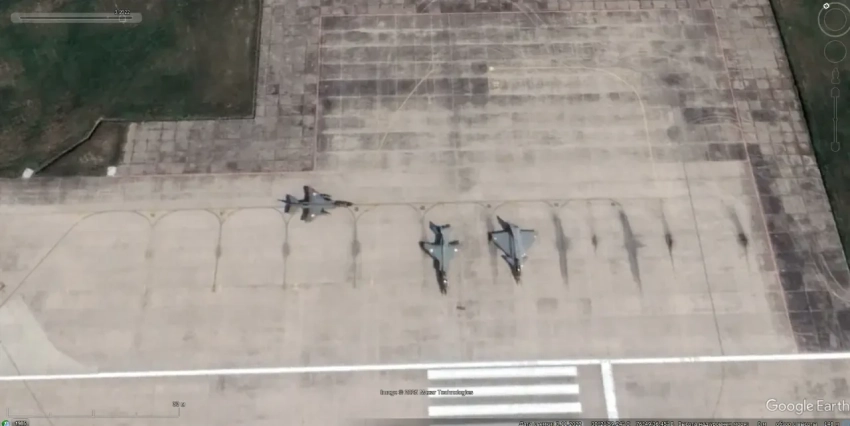 Спутниковый снимок Google Earth: истребители HAL Tejas на стоянке авиабазы Силур, находящейся под управлением Южного воздушного командования