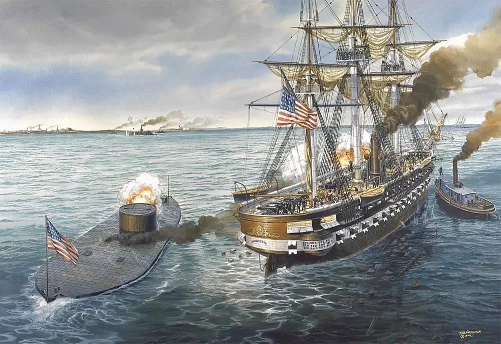 Тут, на его счастье, и началась Гражданская война. Дураки и карьеристы, как это часто бывает в таких случаях, сразу отошли в сторону, страшась ответственности, а Эрикссон решил, что пришло время показать, на что он способен, чтобы совершить революцию в военно-морском деле и помочь Союзу выиграть войну. Он был убеждён, что «победа будет за той стороной, которая владеет морями», и предложил свои услуги федеральному правительству, чтобы гарантировать господство его флота.