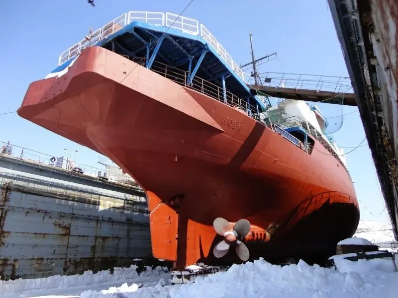 ПСКР пр.745П в доке. Хорошо видна винто-рулевая группа