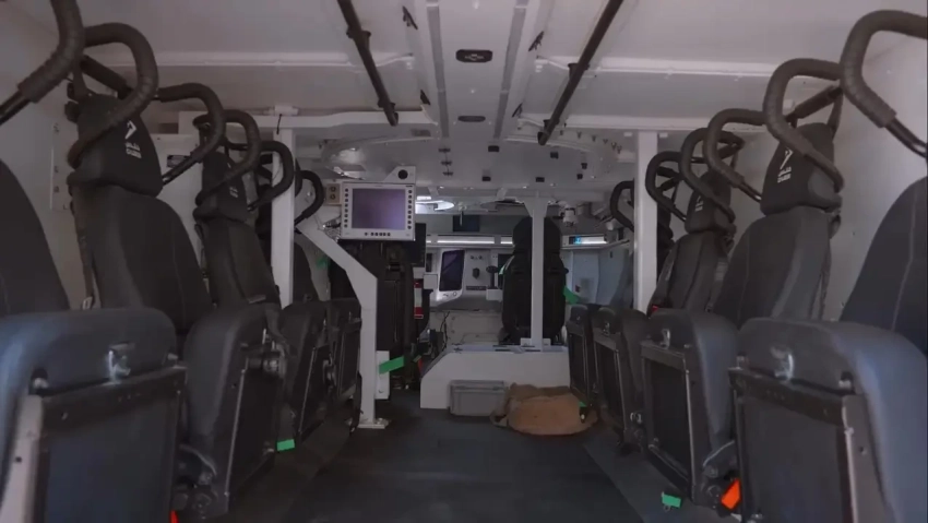 Обитаемый отсек. Видны рабочие места экипажа и кресла десанта. Фото Calidus