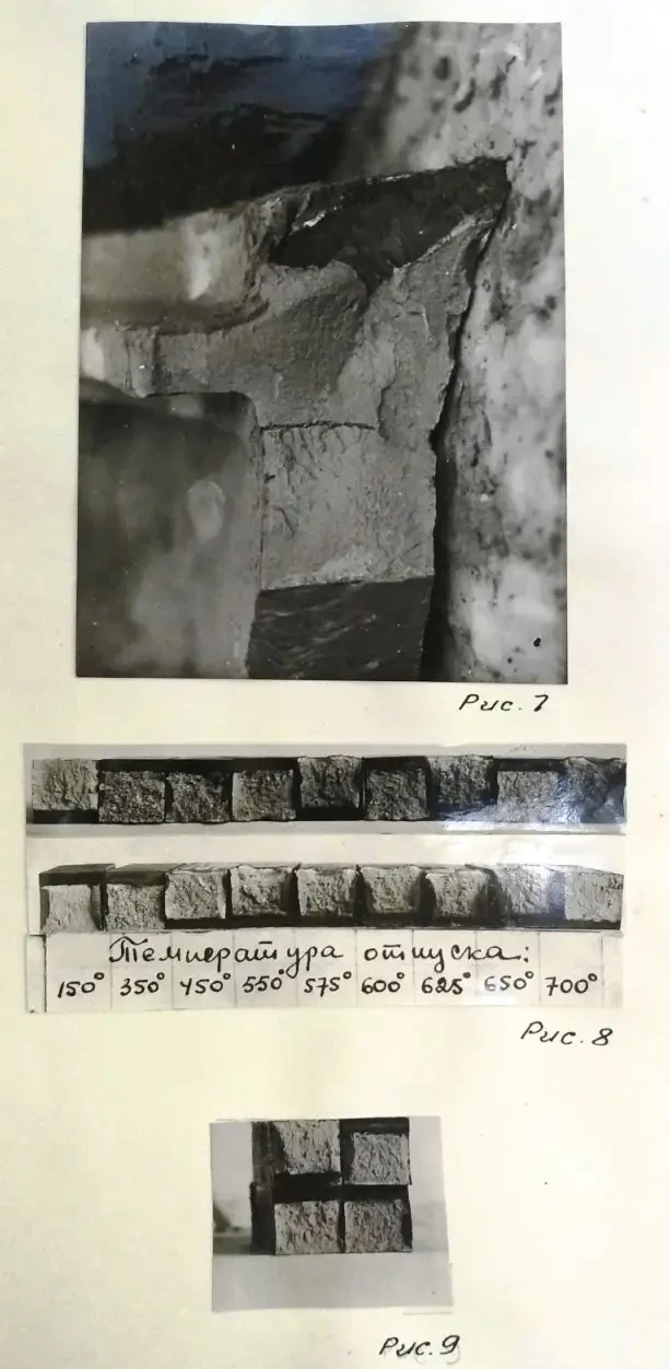 Трехкратная термическая обработка, наличие хрупких поражений, наряду с измененной толщиной стенки изделия (было получено указание о переходе на изготовление валовых башен с уменьшенной толщиной стенок), вызвало необходимость проведения дополнительных исследований, несмотря на удовлетворительные результаты по испытанию обстрелом.