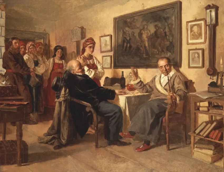 Н. Неврев. «Торг. Сцена из крепостной жизни». Пройдет немного времени, и если и не дети, то внуки изображенных на картине персонажей, возможно, поменяются местами на социальной лестнице, что, собственно, и отражено в «Вишневом саде»