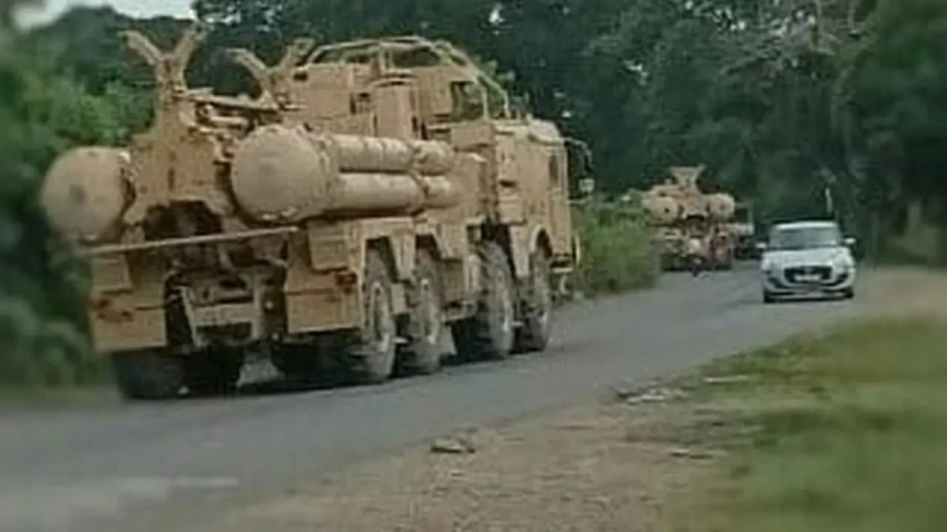 Пусковая установка индийской ЗРС С-400 с ЗУР 9М96Е