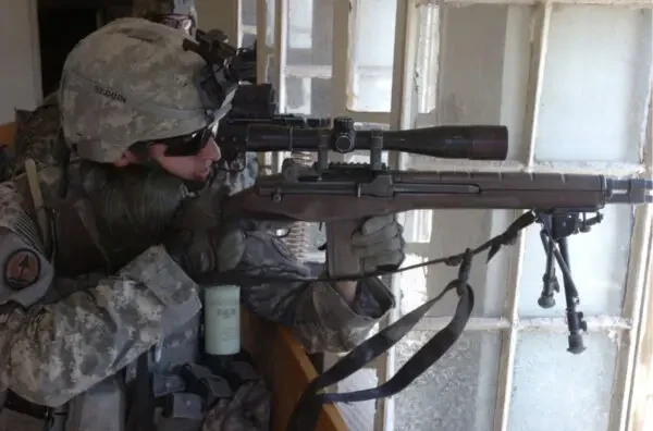 Принятая на вооружение в 1959 году винтовка M14 сочетала в себе элементы проверенной конструкции M1 Garand с современными усовершенствованиями, включая отъёмный магазин и совместимость с патроном 7,62 НАТО. Это позволило солдатам вести более продолжительный огонь, сохраняя при этом его точность и мощность на сравнительно большом расстоянии. M14 хорошо зарекомендовала себя в условиях открытого боя, например в Европе, но и у неё нашлись свои недостатки. При весе более 4,5 кг с полным магазином M14 была тяжёлым оружием, и ей было сложно манипулировать в ближнем бою.