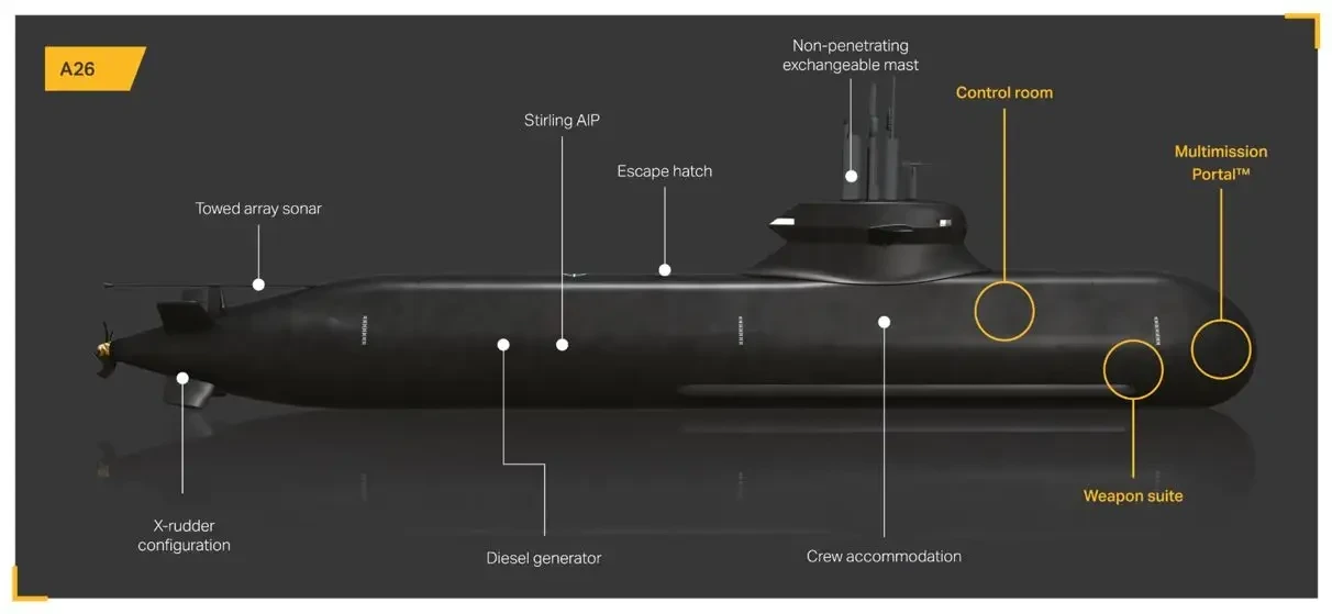 В том же году «Кокумс» перешла под контроль «Сааб». В 2015-м Saab Kockums AB получила заказ от ВМС Швеции на разработку новой субмарины. Планировалось использовать уже имеющиеся наработки по ранее закрытым программам. Проект получил обозначение A26.