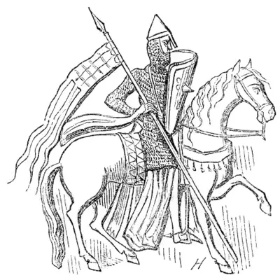 Франкский конный воин. Иллюстрация к «Песне о Роланде» Леона Готье, 1881 г. Согласно печати Галерана, графа Мёлана. 1165 г.
