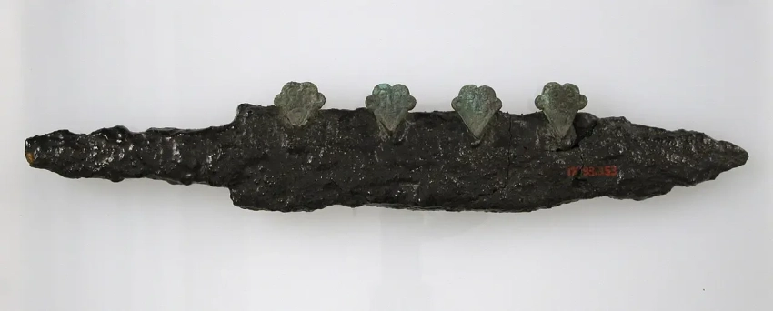 Железный наконечник франциски, найденный в могиле эпохи Меровингов в Уазе. Музей Санлис, Франция