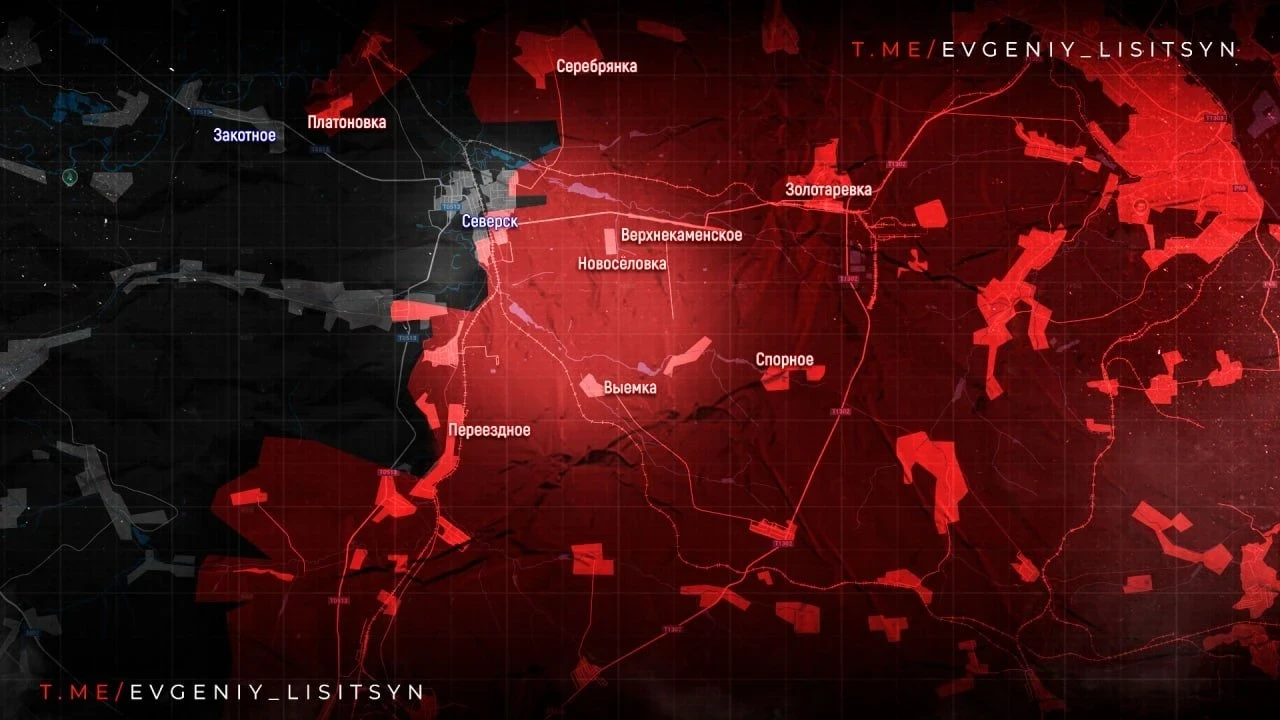 На Северском направлении ВС РФ усиливают позиции в восточном Северске. Бои продолжаются у Свято-Покровского, Озёрного и Дибровой.