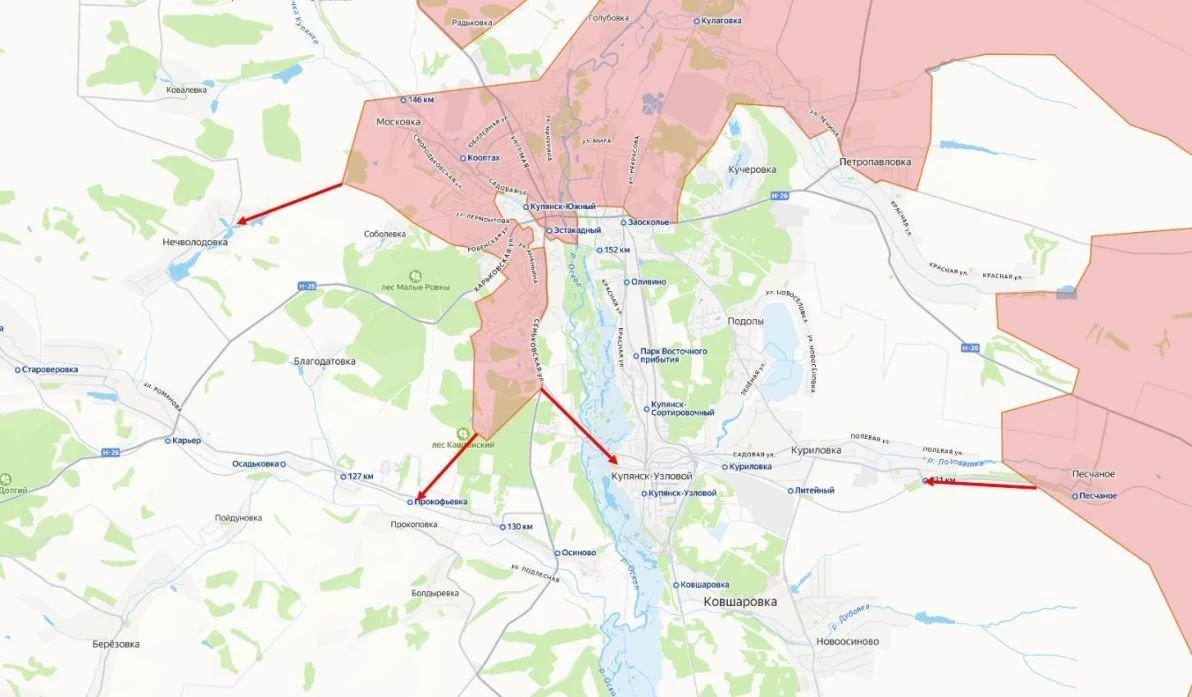 На Купянско-Лиманском направлении ВС РФ с опорой на Купянск давят в направлении Садового, ведут штурмовые действия в Богуславке. Вместе с этим фиксируются боестолкновения в направлении Коровьего Яра, в Дробышево и Яровой, на восточных окраинах Лимана - позиционные бои.