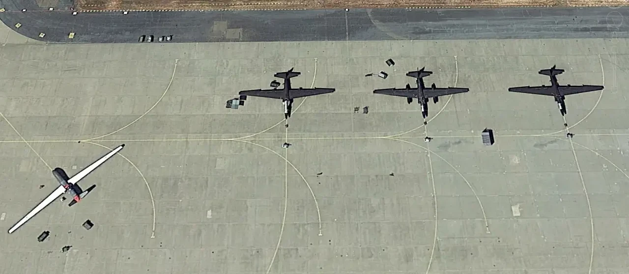 На спутниковом снимке видно, что U-28A на фоне других американских самолётов-разведчиков имеют относительно небольшие размеры. Длина «Драко» составляет всего 14,4 м, а размах крыльев – 16,23 м.