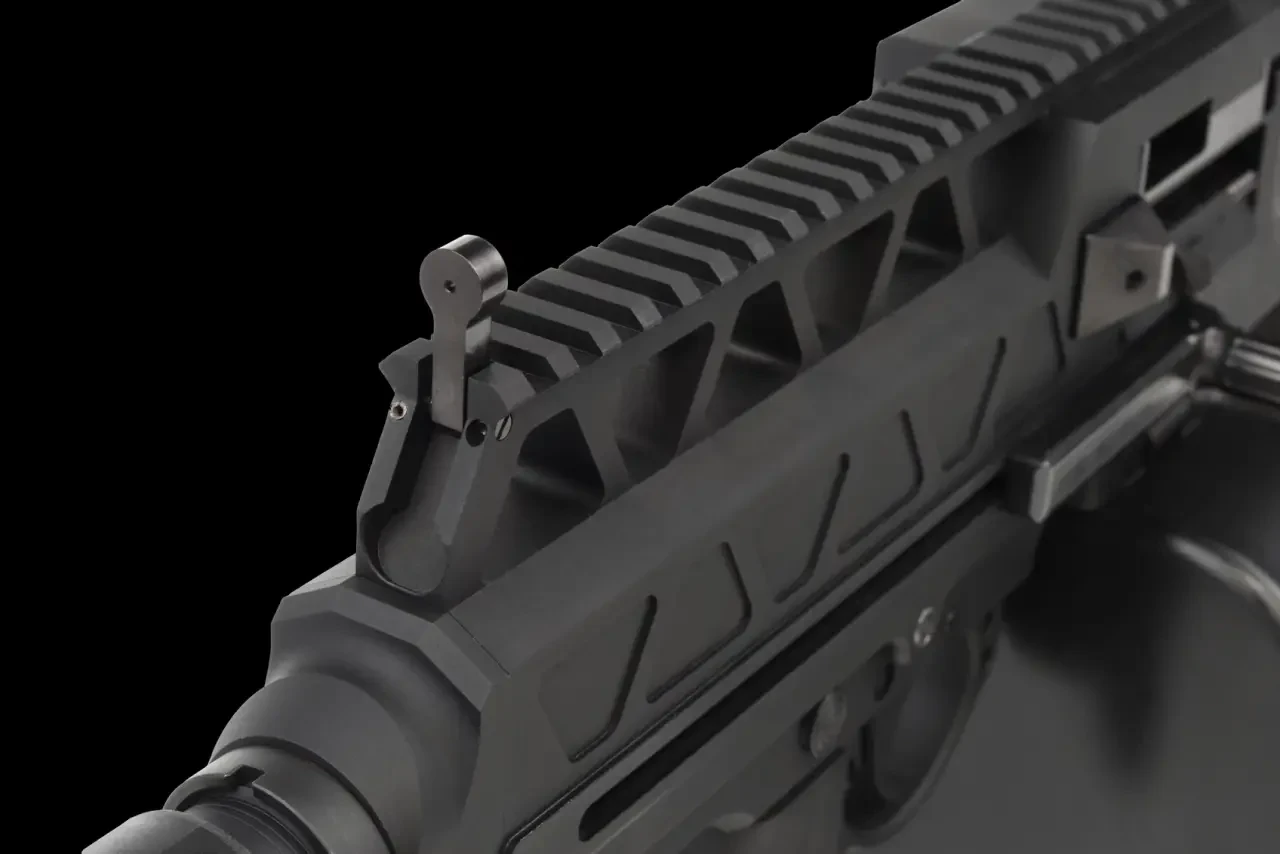 Используется автоматика на основе отвода пороховых газов. Газовый узел, включающий регулятор, находится под стволом. В ранних рекламных материалах упоминался 4-позиционный регулятор, но теперь пишут об 11 режимах. За откат затвора отвечает поршень, вероятно, выполненный заодно с затворной рамой. С рамой взаимодействует боковая рукоятка взведения, во время стрельбы остающаяся неподвижной.