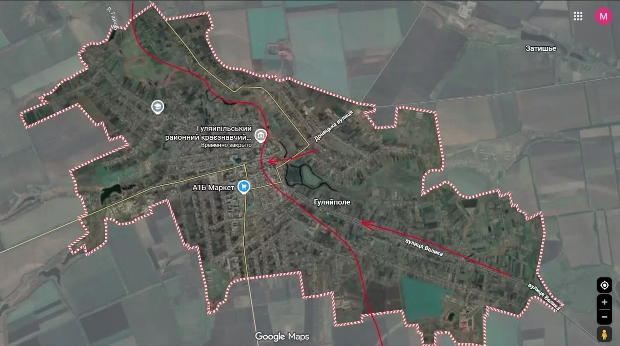 Уцелевшие остатки украинского гарнизона Гуляйполя пытаются организовать оборону, опираясь на школу по улице Свердлова и постройки на стыке улиц Ленина и Мира. При этом значительные силы противника на улице Украинская рискуют оказаться полностью отрезанными от центральной части города, что существенно усложнит положение боевиков ВСУ. Западнее Гуляйполя ВС России уничтожают ФАБами позиции противника в населенном пункте Железнодорожное.