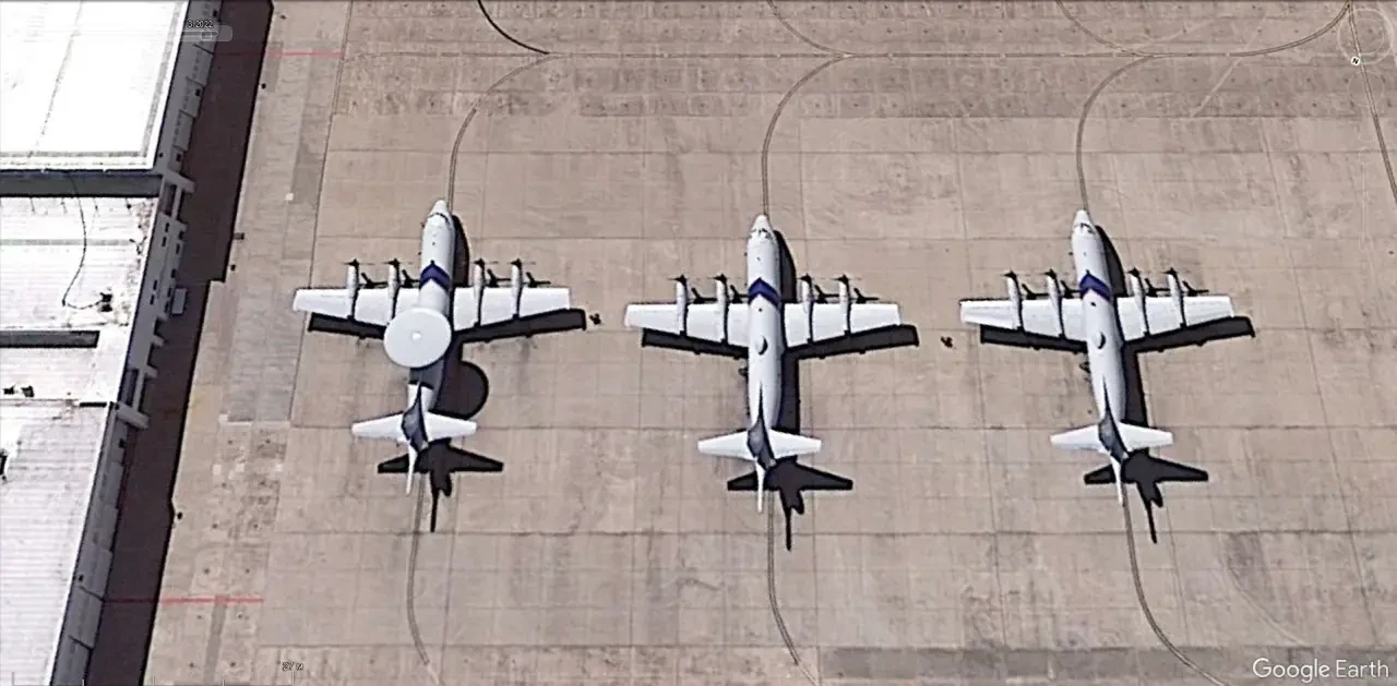 Спутниковый снимок Gооglе Eаrth: самолёты Lockheed NP-3D Orion и Lockheed P-3 AEW Orion на авиабазе Патаксент-Ривер