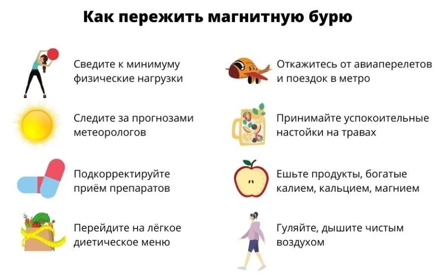 Врачи дают следующие рекомендации на периоды геомагнитных возмущений: