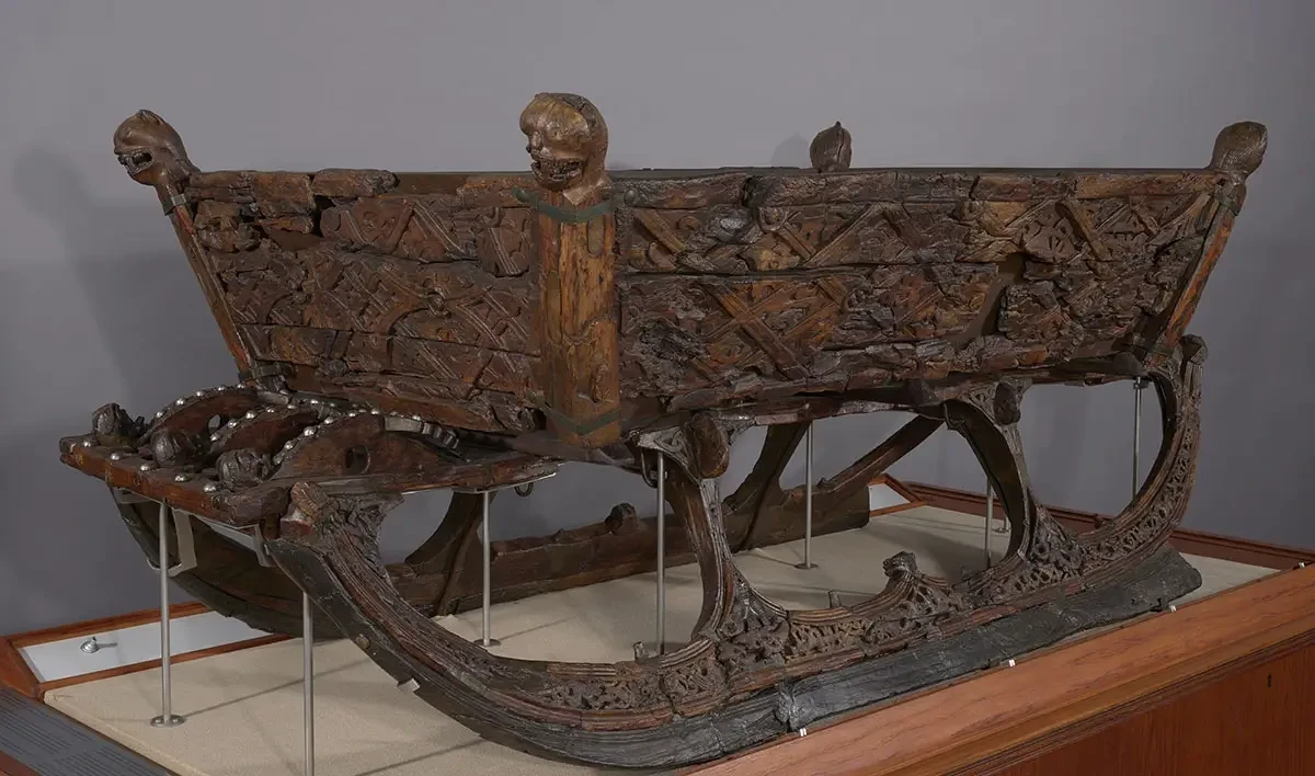 Сани с корабля «Осеберг». Когда в 1904 году проводились раскопки этого корабля, то на нем нашли сани, они были сломаны. Детали саней законсервировали с помощью квасцов, но такая форма консервирования оказалась губительной для дерева, что сделало сани очень хрупкими. Кроме того, детали, которые были скреплены вместе, подверглись атмосферным воздействиям, поэтому сани держатся теперь в основном за счет внешнего слоя лака и клея. Древесина вот-вот превратится в пыль, и необходимо срочно найти способ ее спасти. Впрочем, деньги на их изучение и сохранение уже выделены. Музей истории культуры университета в Осло