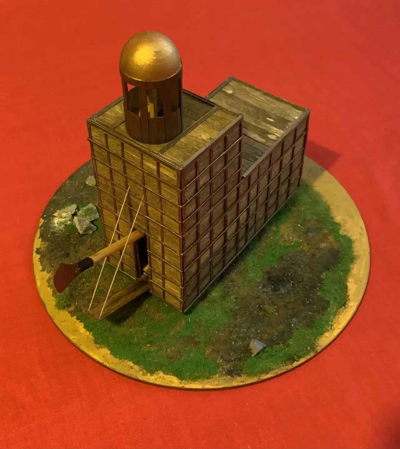 Готовая модель тарана на подставке-подиуме. Вид сверху. Фотография автора