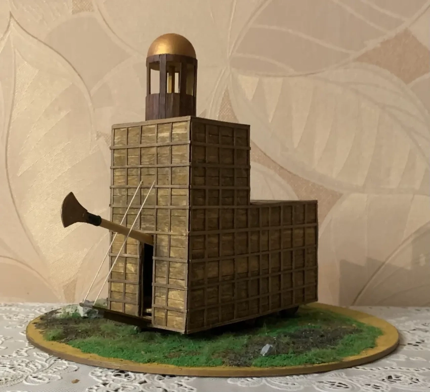 В заключение можно лишь добавить, что сегодня в продаже есть и миниатюрные фигурки ассирийских воинов – пехотинцев и всадников в масштабе 1:72, которые можно приобрести, раскрасить и поставить рядом с этим тараном, создав, таким образом, прекрасную и очень живую историческую диораму. В этом же масштабе можно и модель тарана из полистирола. Вот только выпускается она в «зашкуренном» варианте, поэтому выглядит далеко не так эффектно, как выглядит наша модель.