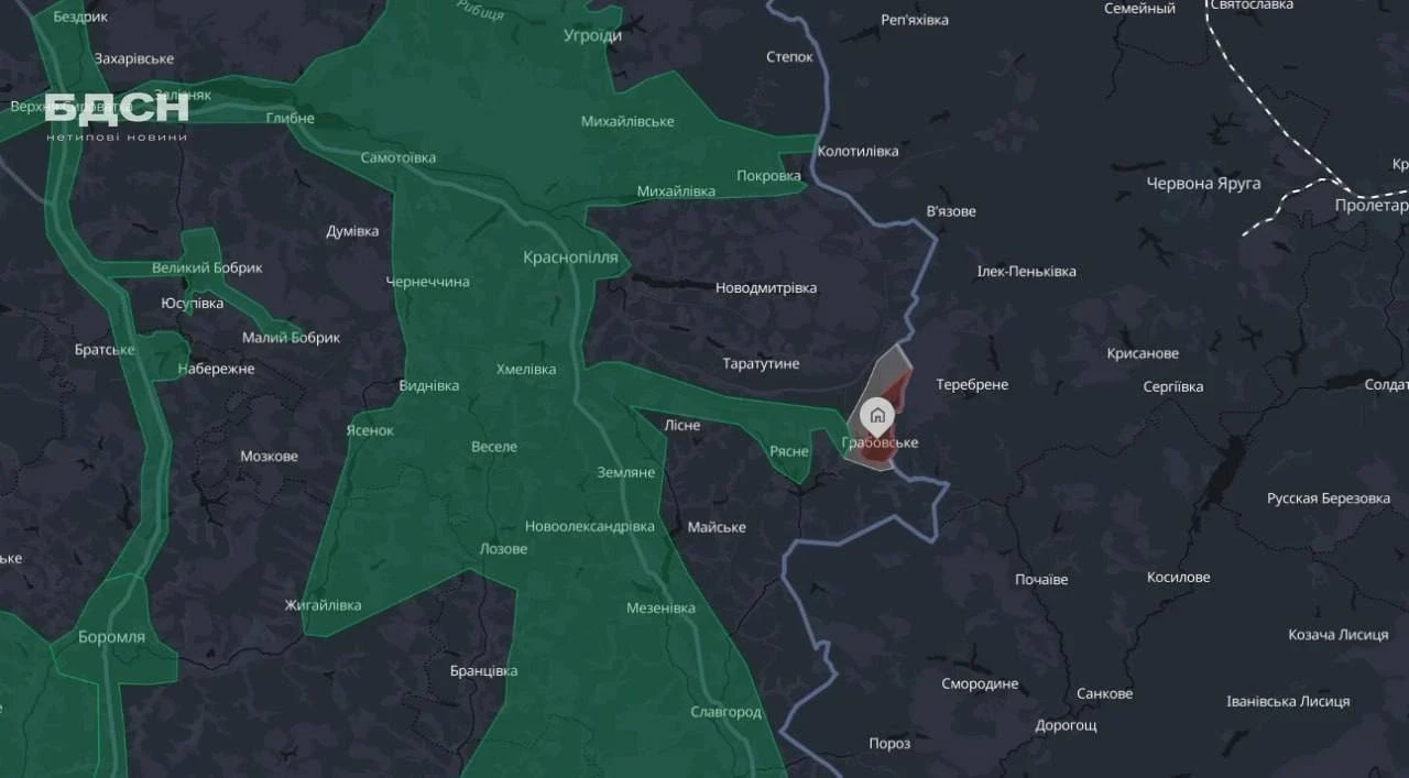 Аналитические ресурсы противника (DeepState) подтвердили переход под контроль РФ села Грабовское. Около 100 российских военных совершили внезапный рывок и закрепились в южной части села, продолжая движение в сторону Рясного.