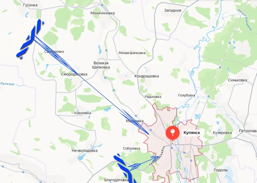 Также силы противника, используемые как для ударов по Купянску, так и для вхождения штурмовых групп, обосновались в лесном массиве Малые Ровны. Через него ведёт дорога на Харьков, которая в черте города именуется улицей Харьковская.
