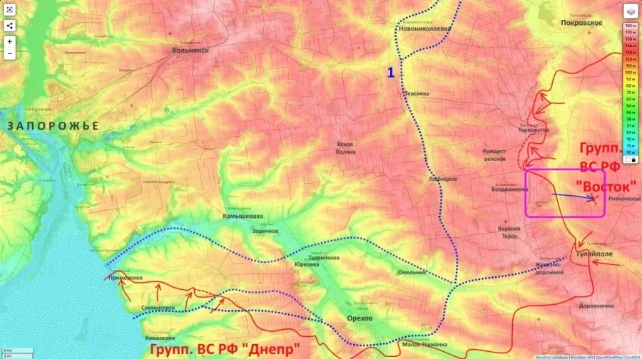 Также отмечается, что возможно продвижение со стороны Малой Токмачки и Новоданиловки. Прогнозируется и усиление натиска севернее Гуляйполя - у Терноватой и на рубеже Верхняя Терса - Воздвиженка.