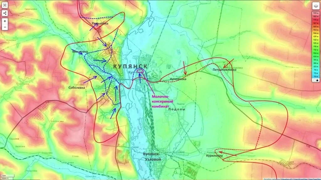 Особое внимание, как отмечает обозреватель, сосредоточено на районе молочно-консервного комбината. По данным средств объективного контроля, на территории предприятия присутствуют российские штурмовые группы. Подоляка указывает, что данный объект рассматривается как один из ключевых узлов обороны на правом берегу реки Оскол. Официальных комментариев украинской стороны по этому поводу не поступало.