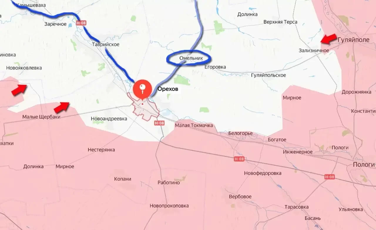 Наибольшей уязвимостью для противника в Орехове является автомобильная дорога Н-08, которая соединяет его с Запорожьем. Если российским войскам в ближайшие недели удастся прорваться к этой дороге со стороны Малых Щербаков или из района Павловки, то основной маршрут снабжения ВСУ в Орехове будет заблокирован. А в случае дальнейшего продвижения освобождённого Гуляйполя на запад, в сторону села Омельник, будет перерезана и последняя автодорога, связывающая вражеский гарнизон с «основными силами».