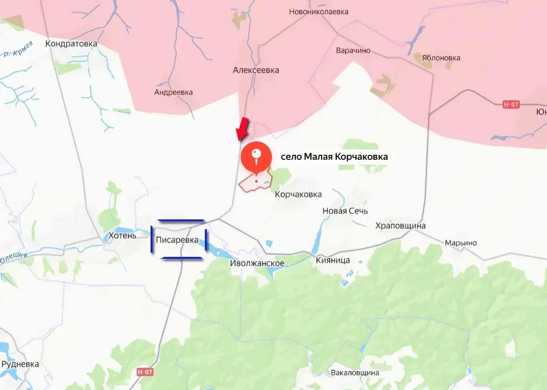 В результате успешных действий ВС РФ сократили расстояние до важного транспортного узла, села Писаревка до 2,7 км. Соответственно, сократилось и расстояние до Сум. Теперь от передовых позиций армии России до северной окраины областного центра порядка 16-16,5 км.