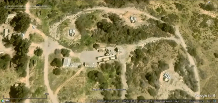 Спутниковый снимок Googlе Eаrth: позиция ЗРК С-125М1 на побережье в 8 км южнее города Банияс. Снимок сделан в феврале 2024 года