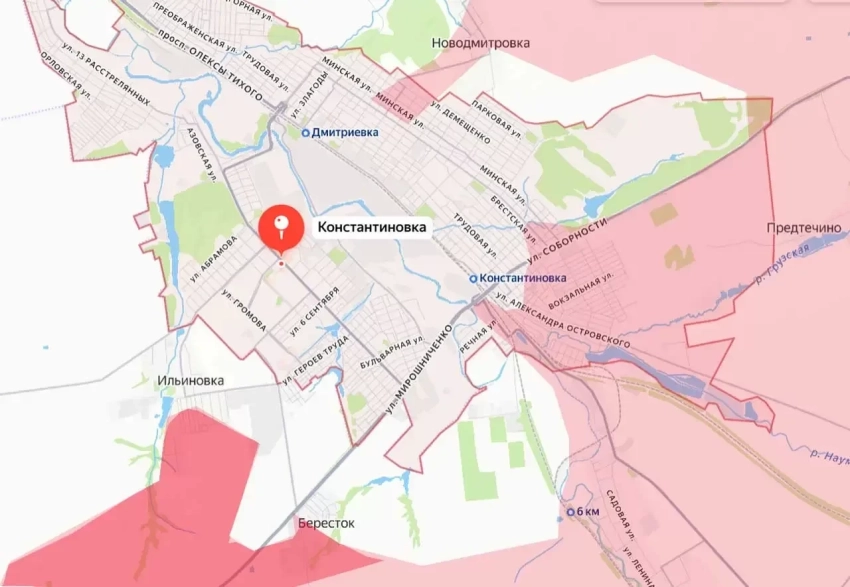 В результате успешных действий армия России выбила противника из большей части села Бересток, которое является, по сути, южным пригородом Константиновки. Одновременно с этим штурмовые группы ВС РФ вошли в Ильиновку, которая на севере напрямую стыкуется с упомянутым городом Константиновка.