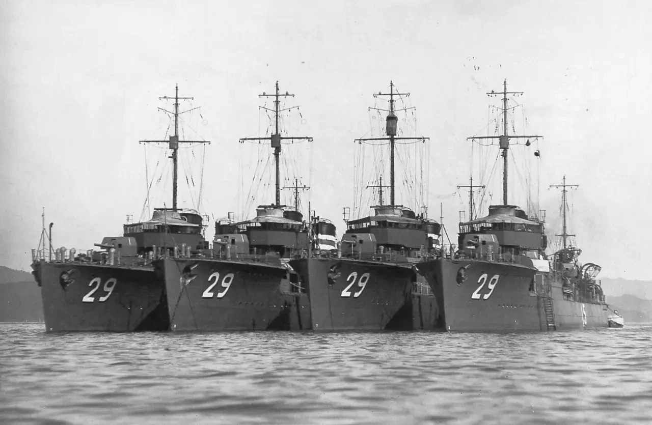В общем, старые эсминцы с не самым новым вооружением, без приличных ГАС и радаров могли претендовать только на роль эскортных кораблей и мишеней. Что в целом и более чем получилось, достаточно вспомнить, что в американский тяжелый крейсер «Хьюстон» запустили торпеды три эсминца, и из 12 не попала ни одна. В отличие от торпед тяжелого крейсера «Могами», у которого был радар и более совершенные прицелы.