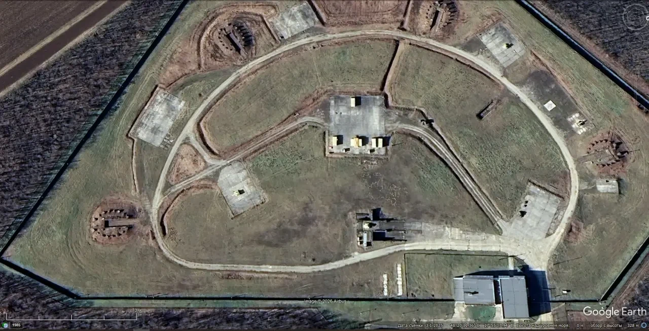 Спутниковый снимок Googlе Еarth: бывшая позиция ЗРС С-300ПМУ в 7 км к западу от города Нитра. Снимок сделан в марте 2025 года