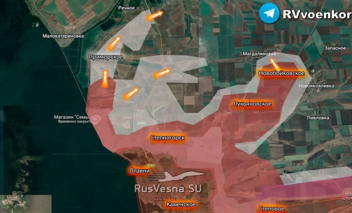 В районе Терноватого, как утверждается, большая часть населенного пункта перешла под контроль российских сил, при этом противник удерживает позиции в районе элеватора у станции. Этот узел рассматривается как важный для обороны Ореховского направления.