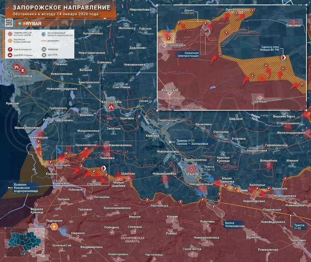 На Ореховском участке фронта сохраняется высокая интенсивность боевых действий. Штурмовые подразделения ВС РФ продвинулись в восточном направлении южнее Лукьяновского, где противник всё ещё удерживает отдельные позиции, однако вся линия соприкосновения здесь находится под постоянным давлением российских сил.