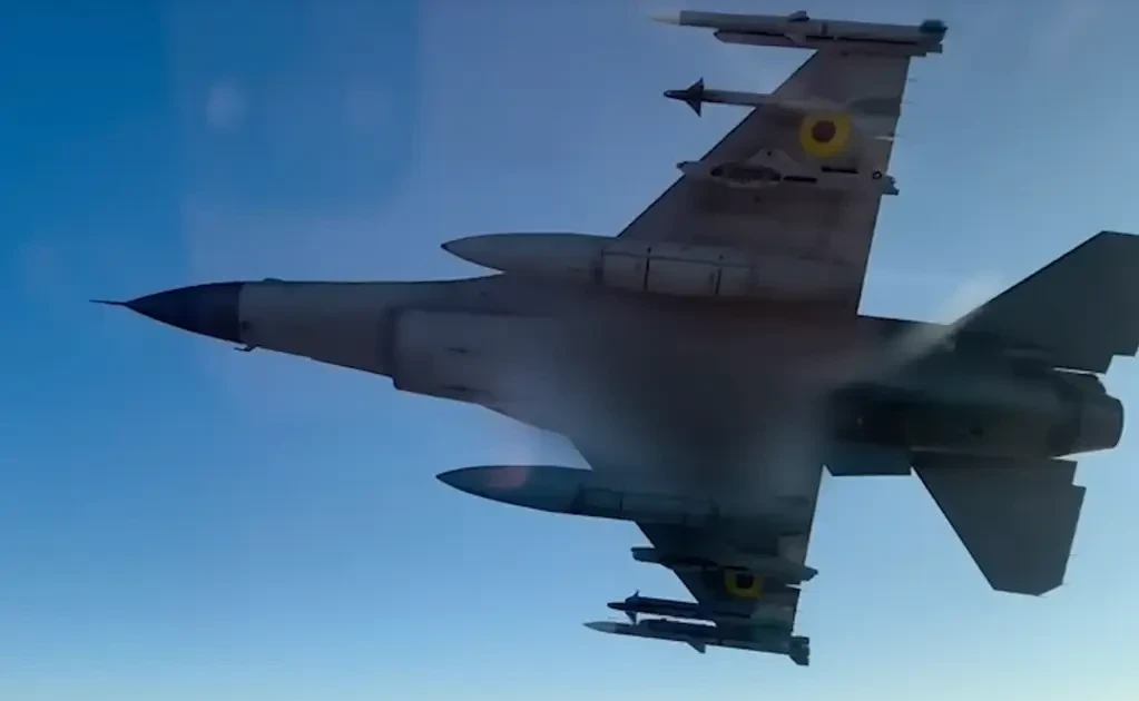 На одном из кадров, снятых с заднего сиденья F-16BM, видно, как ракета Sidewinder улетает, чтобы уничтожить беспилотник. Однако неясно, российский ли это беспилотник или цель во время тренировочного вылета. Сами понимаете, запросто может быть и кадр из записи тренировочного полета.