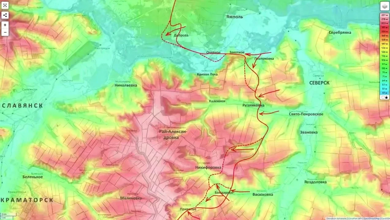 Наиболее резонансные новости приходят с Краматорского участка. Как отмечает Юрий Подоляка, оборона ВСУ на водораздельных высотах к востоку от крупнейшей агломерации региона начала стремительно терять устойчивость.