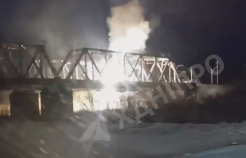 В сети опубликованы кадры, на которых запечатлены удары российских БПЛА-камикадзе семейства «Герань» по железнодорожным мостам в Сумской и Днепропетровской областях.