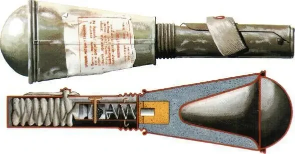 Британский противотанковый гранатомёт PIAT, кумулятивная граната и её разрез