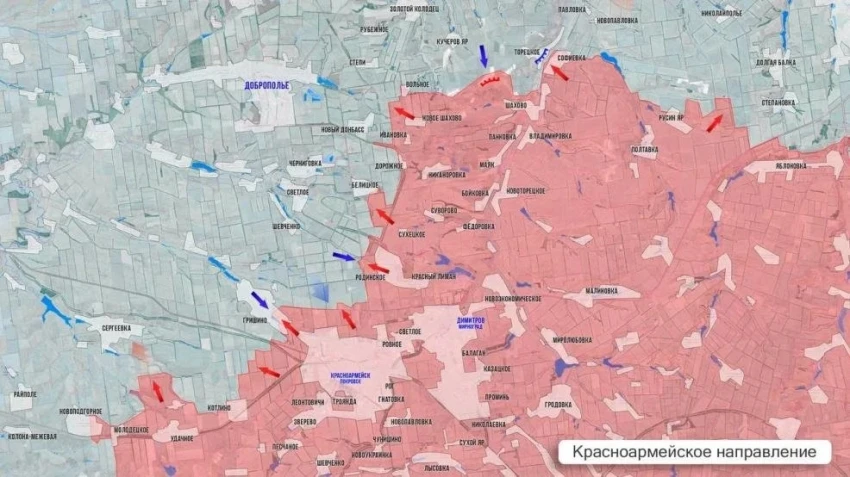 Восточнее Петропавловки российские войска закрывают «карман», взяв под контроль территорию площадью 13 км² на участке шириной 7 км.