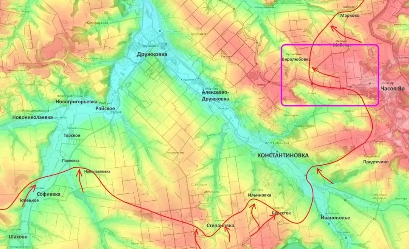 Противник, потеряв под ударами армии России оборонительный рубеж к западу от канала Северский Донец-Донбасс в районе Марково, с людскими потерями пятится к Краматорску. Если ВС РФ продолжат движение севернее упомянутой реки Беленькая, то там до Краматорска не осталось населённых пунктов. На данный момент эти территории представляют собой сплошные заснеженные поля, где с линиями обороны у ВСУ есть определённые сложности.