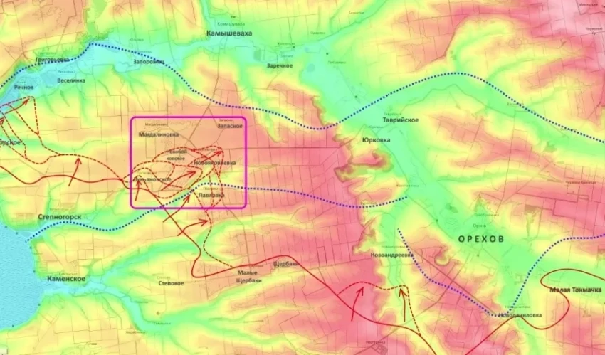 Таким образом, Ореховская группировка противника постепенно оказывается под угрозой окружения сразу с нескольких направлений - классическая схема «клещей».