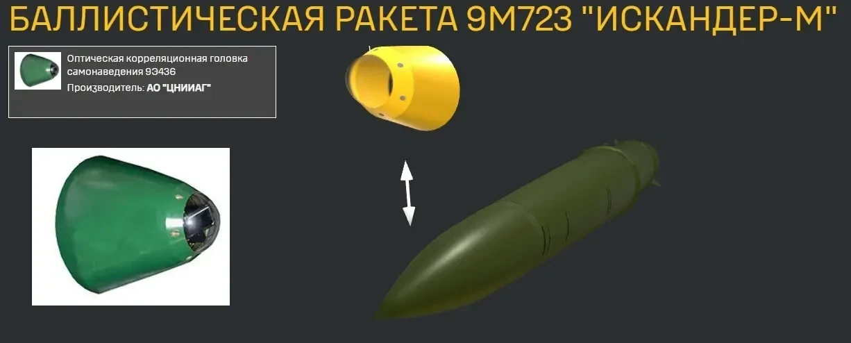 По данным ресурсов противника на ракете 9М723 комплекса «Искандер-М» устанавливается оптическая корреляционная ГСН 9Э436