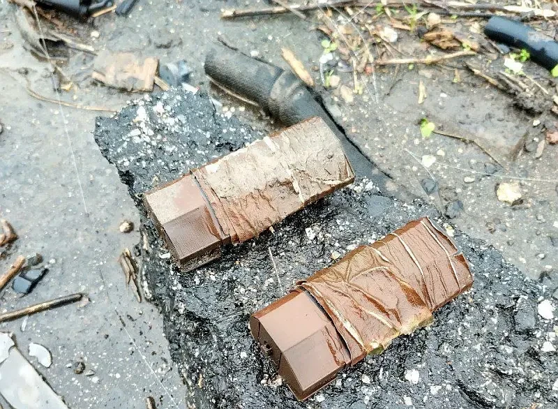 Самодельные взрывоопасные предметы (ВОП) небольшого размера противник разбрасывает в основном за линией фронта в тыловых районах с беспилотников. Может присутствовать маскировка в виде коры дерева или травы.
