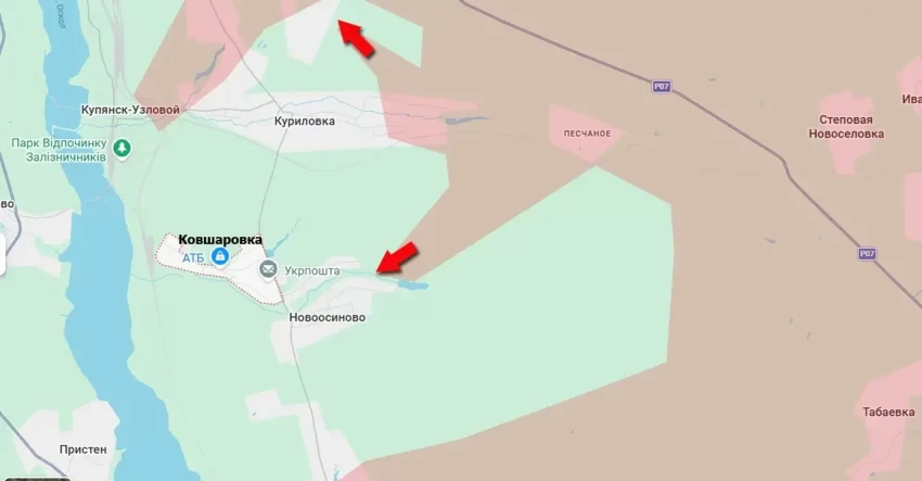 Появляется информация о том, что российские подразделения продвинулись на расстояние около 3,5 км между небольшими реками Лозоватка и Дубовка узким фронтом. В результате был осуществлён выход к упомянутой реке Дубовка со стороны станции Песчаное. Это позволило получить контроль над позициями противника к востоку от крупного села Ковшаровка, являющегося южным пригородом Купянска-Узлового.