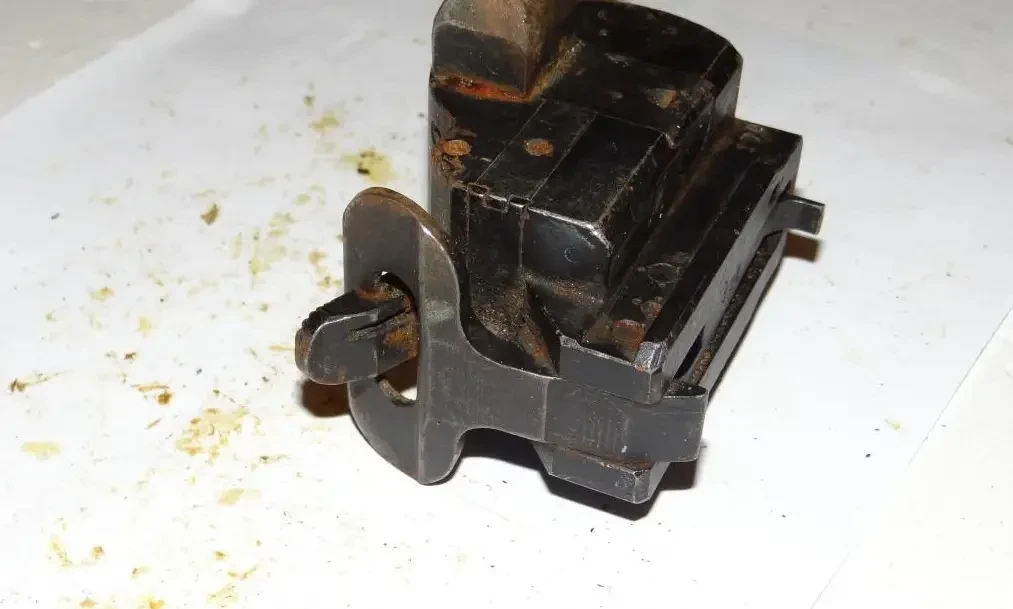 А вот задняя часть ствольной коробки ПКТ со снятым блоком электроспуска и, соответственно, без гашетки. Кстати, фото этого пулемёта взято с сайта по продаже макетов оружия, и конкретно этот ПКТ можно купить.