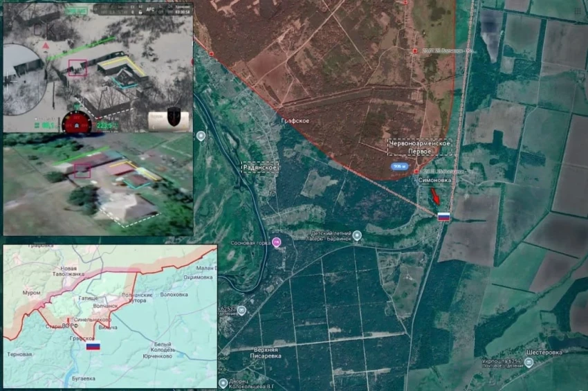 В жилой застройке Червоноармейского-Первого (Симиновка) наши штурмовики продвинулись на 1 км к югу, закрепившись на новых позициях под плотным огнем противника.