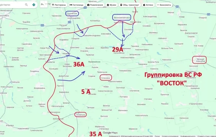 Прорыв на Гавриловку. Российские штурмовики нанесли неожиданный фланговый удар из района Ивановки, выйдя к окраинам Гавриловки.