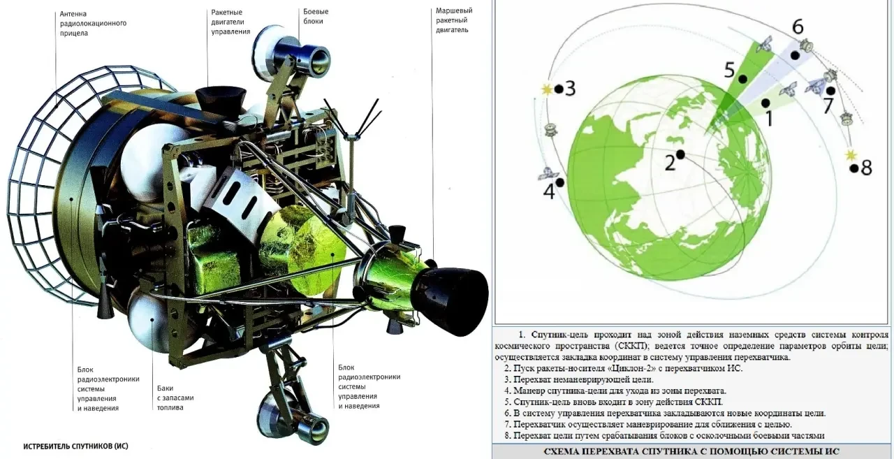 С ИСЗ, расположенными на высоких орбитах, всё проще. Нет, конечно, уничтожать спутники, расположенные на геостационарной орбите (ГСО), технически гораздо сложнее, чем спутники, расположенные на НОО, но их немного, а средства для уничтожения ИСЗ на ГСО были разработаны ещё во времена СССР – ранее мы говорили об этом в материале Орбитальные чистильщики.